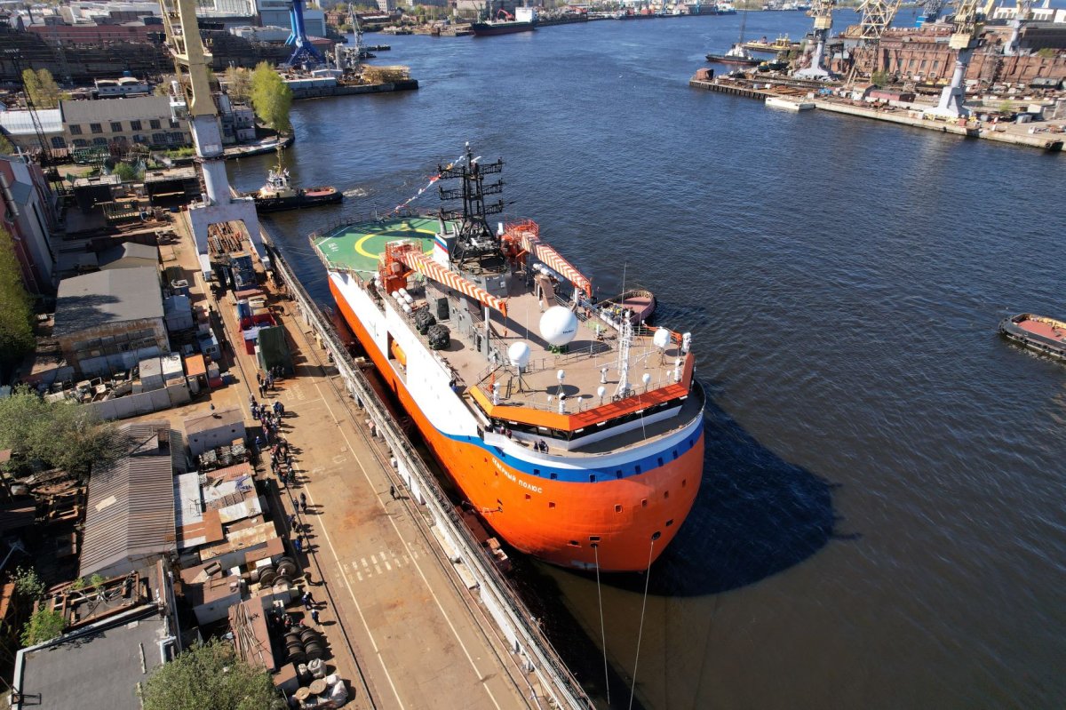 Судно, отшвартованное от достроечной набережной предприятия, отправилось в Большой порт Санкт-Петербурга. Там платформа будет готовиться к переходу в Мурманск, чтобы затем отправиться в научно-исследовательскую экспедицию.