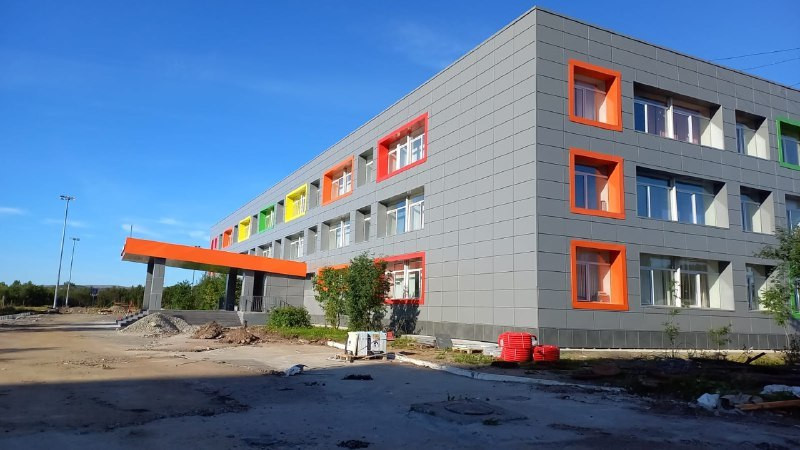 Строительно-монтажные работы полностью завершены. Подрядчик проводит клининг и вывозит с объекта строительный мусор. 1 сентября обновленная школа в Заозерске встретит своих учеников.