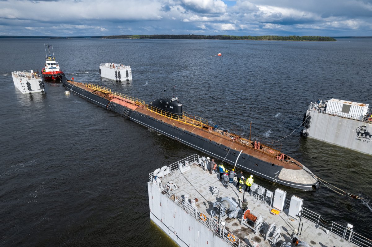 АПЛ К-3 "Ленинский комсомол" 2 сентября была установлена на погружную баржу "Атлант" в акватории Выборгского судостроительного завода. Эта баржа единственная в России подходит для перевозки кораблей такого размера и способна поднять его до уровня причала в порту выгрузки.