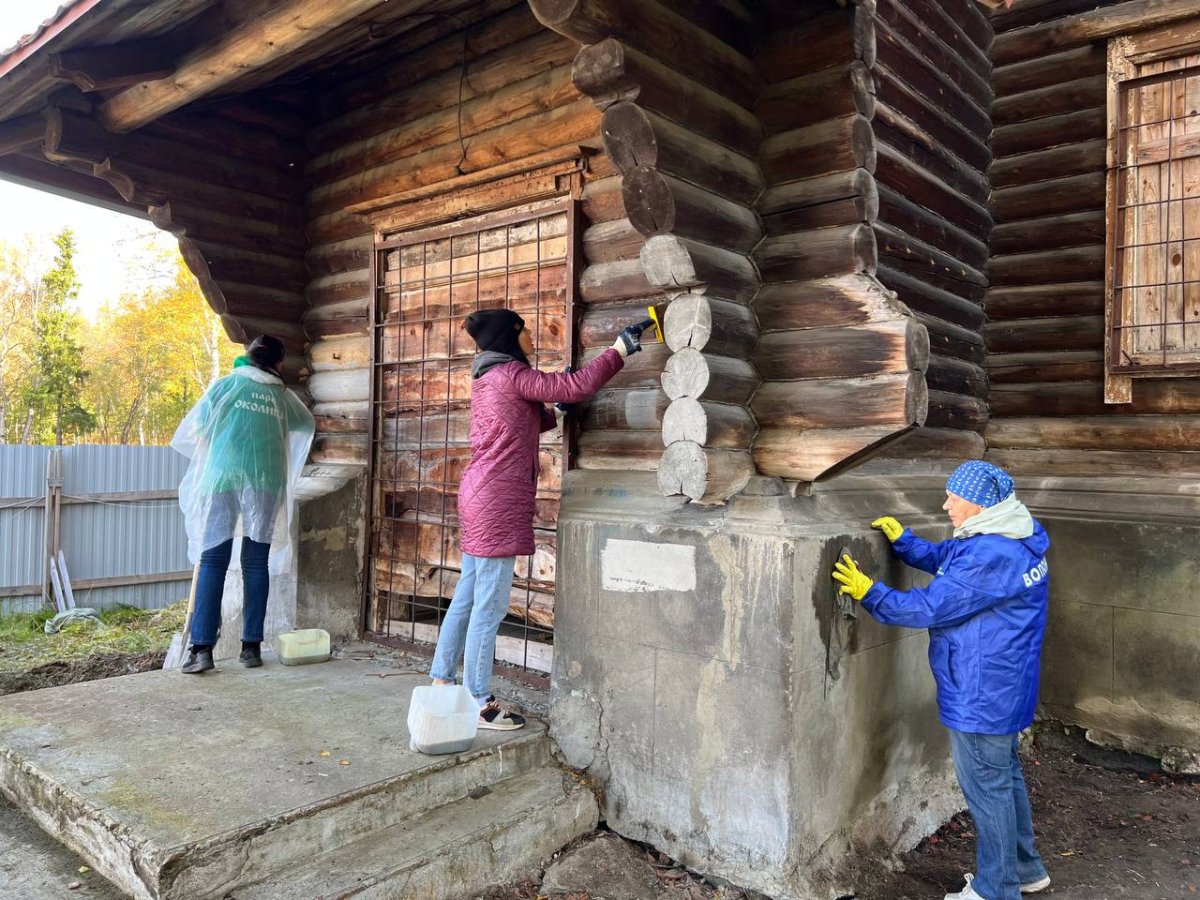 Волонтеры приводили в порядок прилегающую к зданию территорию. С него вывезли мусор, срыли холм из песка и дерна. Забор вокруг "Русалочки" укрепили, на кустах и деревьях выполнили санитарную обрезку. Основная работа коснулась деревянного здания. Волонтеры зачистили цоколь от мха, грибка, лишайника и обработали его фунгицидным составом. Со стен удалили надписи и следы гниения. Брусья обработали био- и огнезащитными составами.