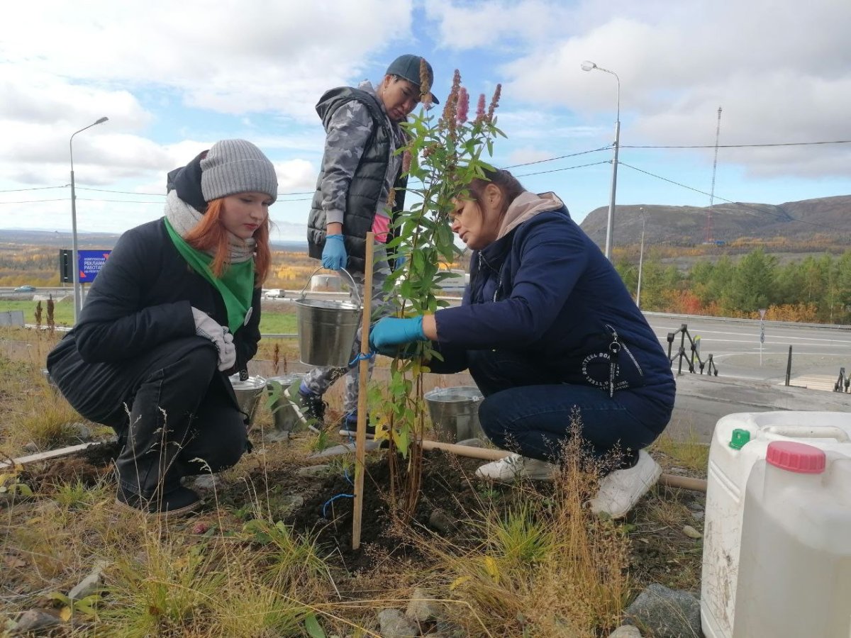 В акции участвовали экоактивисты, студенты, работники крупных предприятий и администрации Кировска. На территории высадили 90 растений: спирею, боярышник, сирень и рябину.