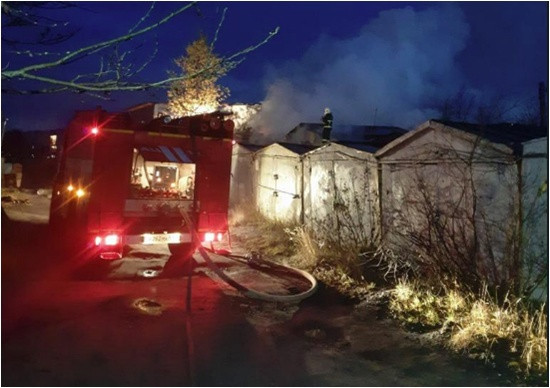 Сообщение о пожаре поступило в дежурную службу в 06:15. Заявитель сообщил, что за железнодорожным переездом в районе поста ВАИ горят гаражи.