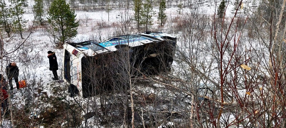 Как сообщал "Би-порт", в пятницу в 13:30 водитель рейсового автобуса №237 "Снежногорск – Мурманск" не справился с управлением. Транспортное средство вылетело в кювет и перевернулось на левый бок. Всего в автобусе было 18 пассажиров, среди которых семь несовершеннолетних.