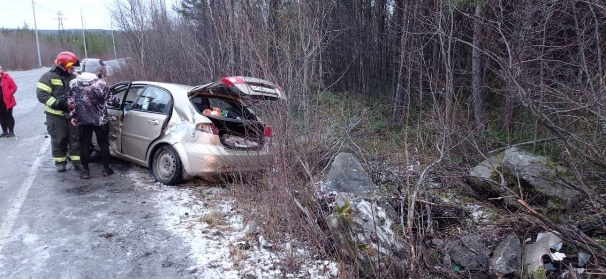 В Оленегорске 24 октября около 16 часов 27 минут водитель автомобиля Chevrolet Laccetti не справился с управлением на Ленинградском проспекте. Машина съехала с дороги и врезалась в камень.