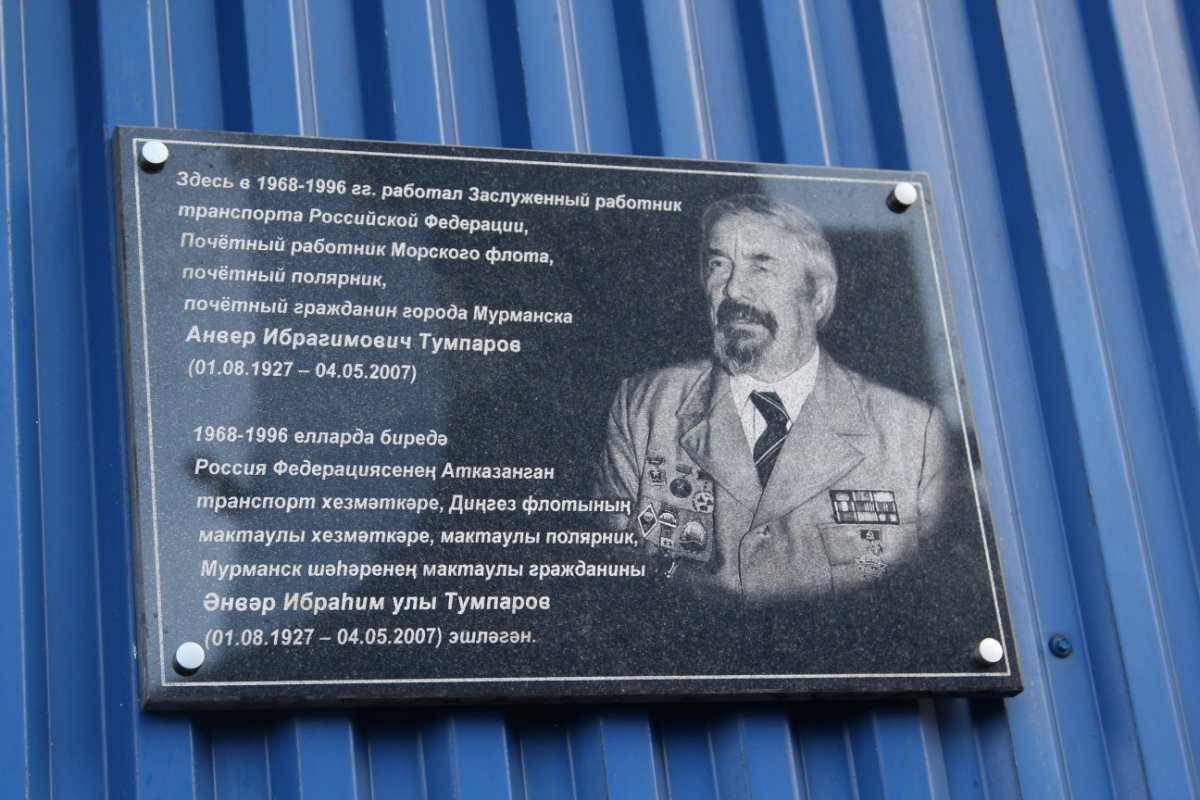 Открытие мемориальной доски состоялось в год 95-летия Анвера Тумпарова. Работе на ремонтно-технологической базе атомного ледокольного флота он отдал 28 лет жизни (скончался 4 мая 2007 года). Памятная доска размещена на здании ремонтно-технологического комплекса, где располагался кабинет заслуженного работника "Атомфлота".