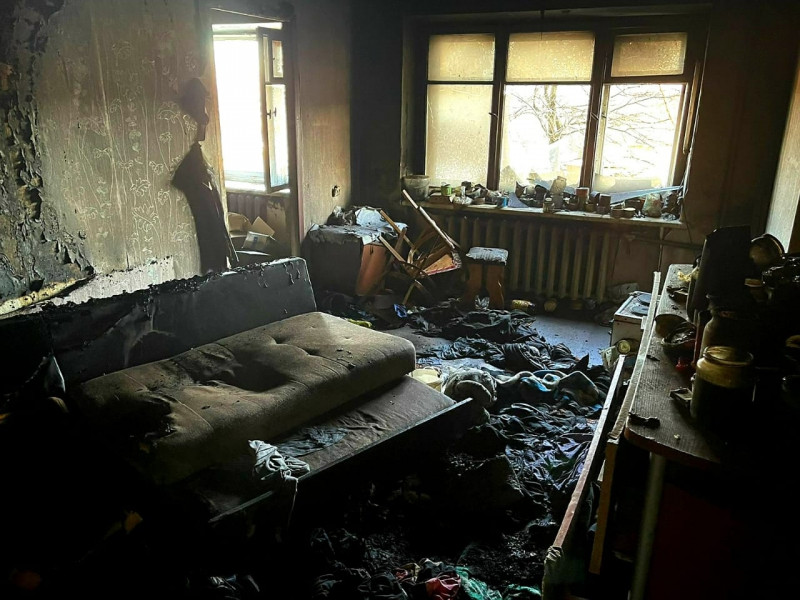 Северянин проживал в поврежденной пожаром квартире. По предварительным данным, очаг возгорания располагался в комнате. В квартире сгорел диван, закоптились стены и потолок. Из подъезда были эвакуированы семь человек.