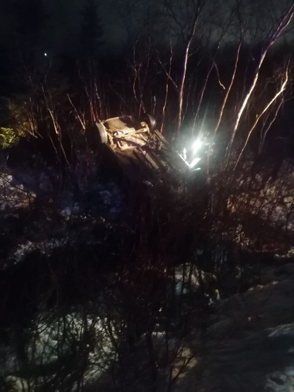 В Коле вечером 12 ноября на третьем километре Кильдинского шоссе произошла авария. Автомобиль Chevrolet Cruze съехал с дороги в кювет и перевернулся.