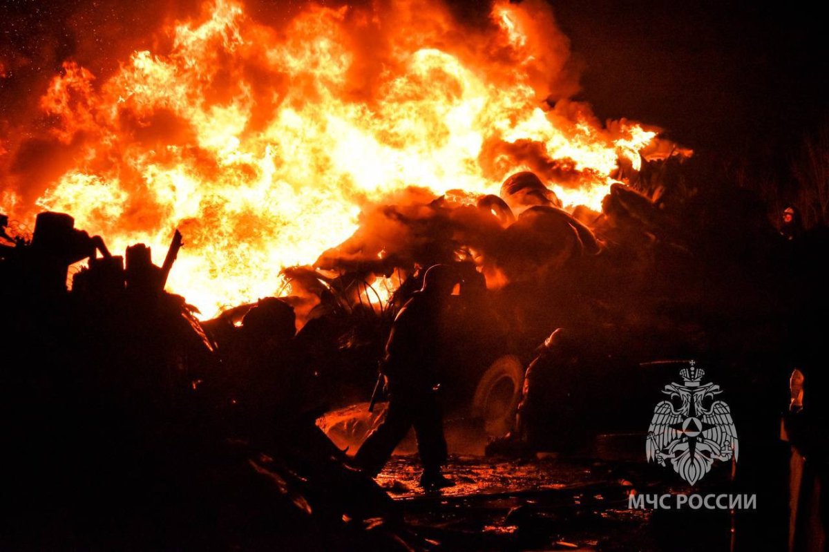В 4:47 пожар был локализован, в 7:17 ликвидировано открытое горение. Пожарно-спасательные подразделения продолжают работу.