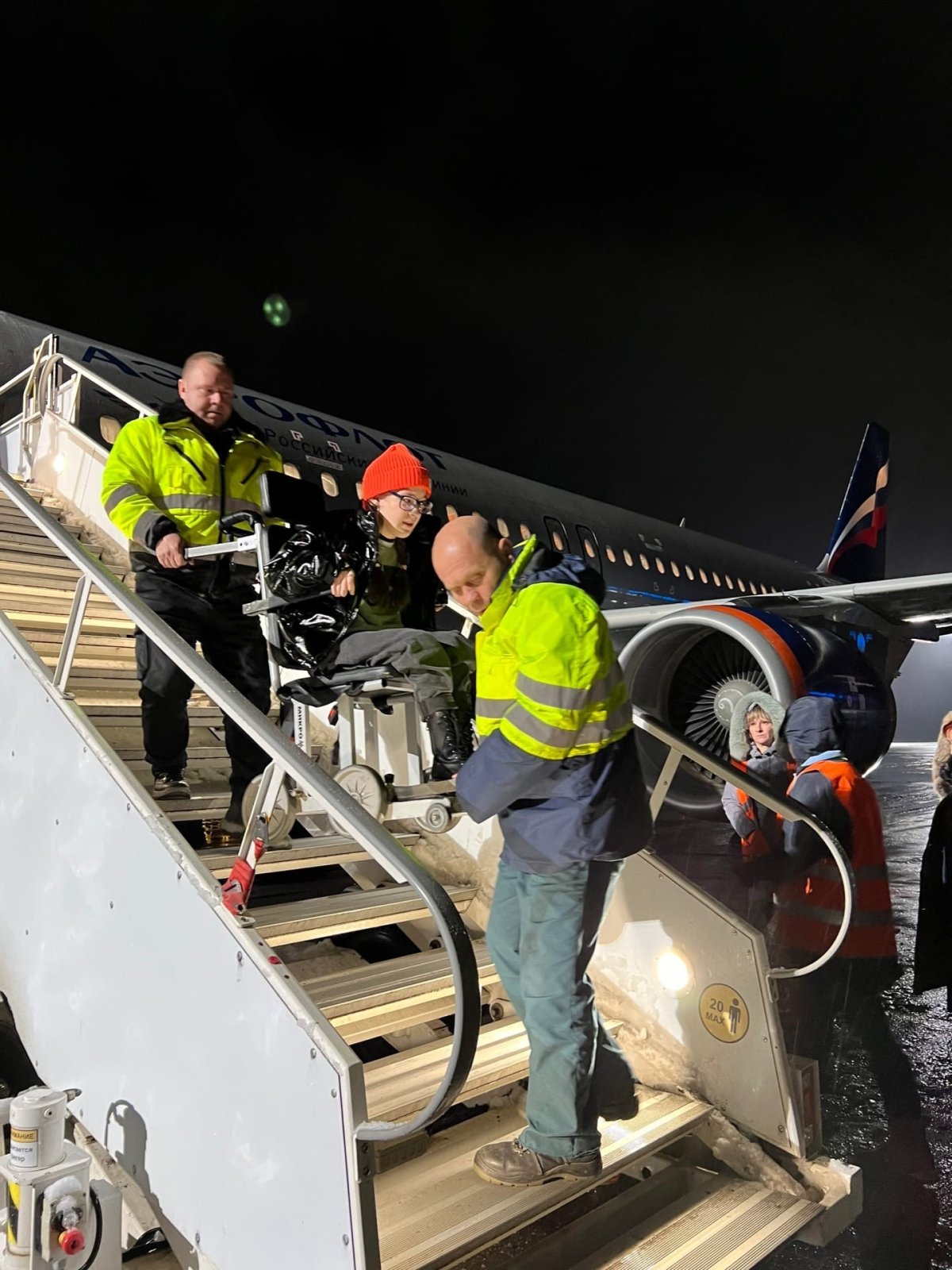 Там также подтвердили, что при отсутствии возможности использования амбулифта, обслуживание маломобильных пассажиров осуществляется автомобилем скорой медицинской помощи, а также кресла, предназначенного для подъема и спуска пассажиров с инвалидностью по лестнице. На борт самолёта пассажиров вручную доносят специально обученные люди.