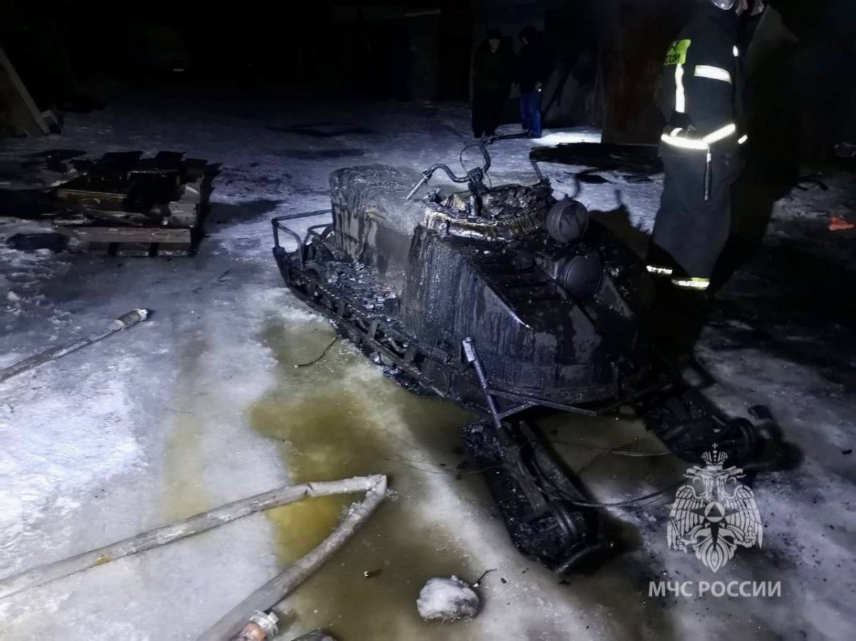 "Гараж выгорел по всей площади, сгорели снегоход и вещи бытового использования. Из гаража вынесен газовый баллон 50 л. В рядом стоящем гараже частично прогорел потолок", - сообщили в областном ГУ МЧС.