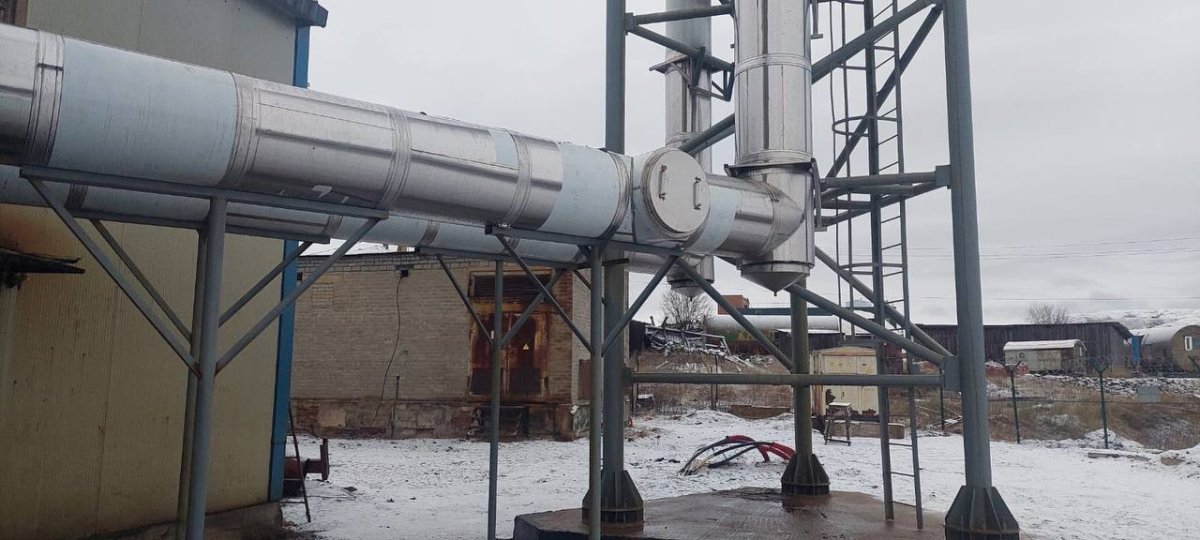 Новую 30-метровую дымовую трубу установили на мазутной котельной в Териберке. Конструкция состоит из двух стальных труб в термоизоляции.