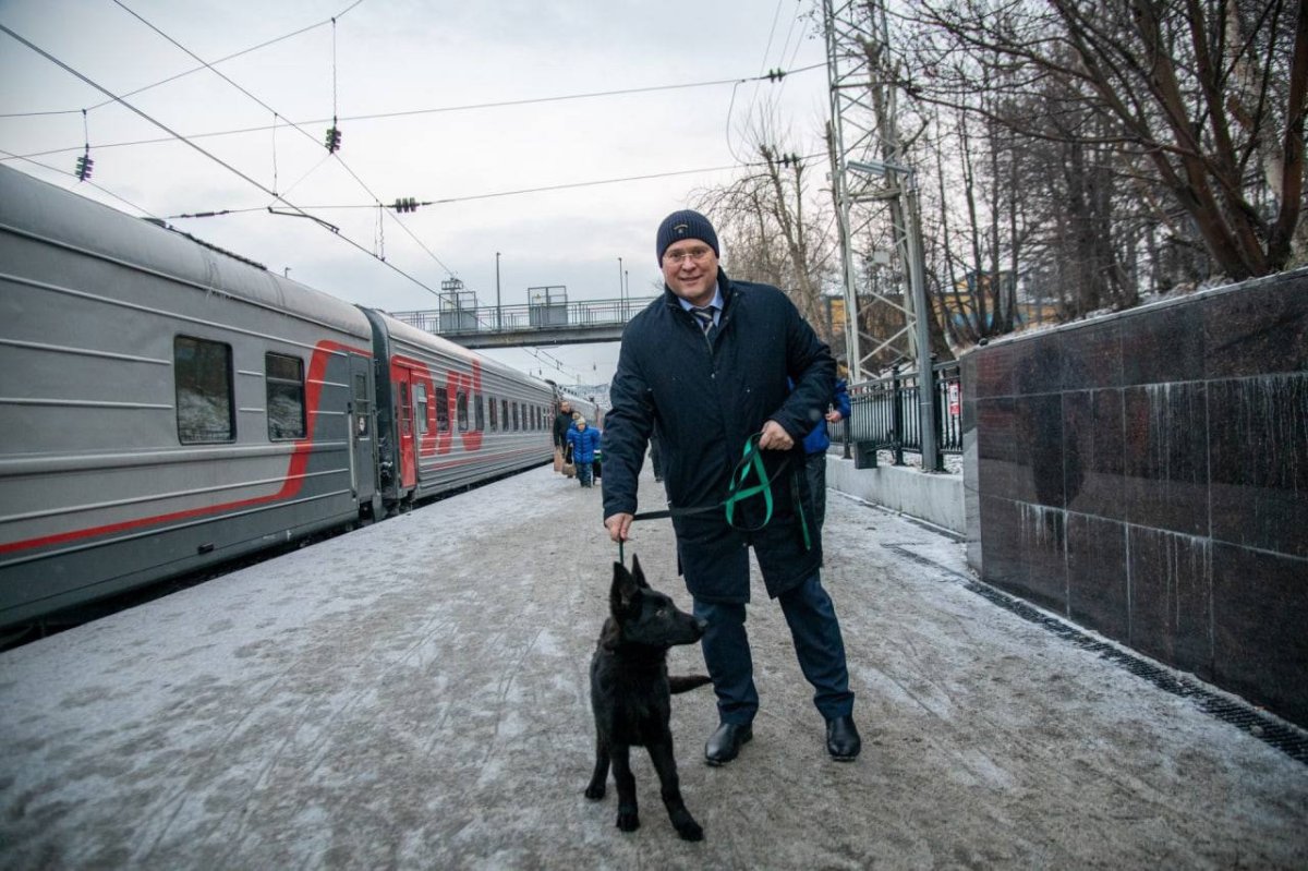 "Вчера мы отмечали Всемирный день домашних животных, а уже сегодня я встретил на вокзале нового друга нашей семьи. Знакомьтесь, это немецкая овчарка Клякса, ей всего четыре месяца", - написал Сердечкин.