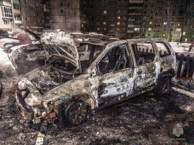 Сообщение о происшествии поступило в экстренные службы в 4 часа 40 минут. Пожар ликвидировали спустя 16 минут. Машина обгорела по всей площади.