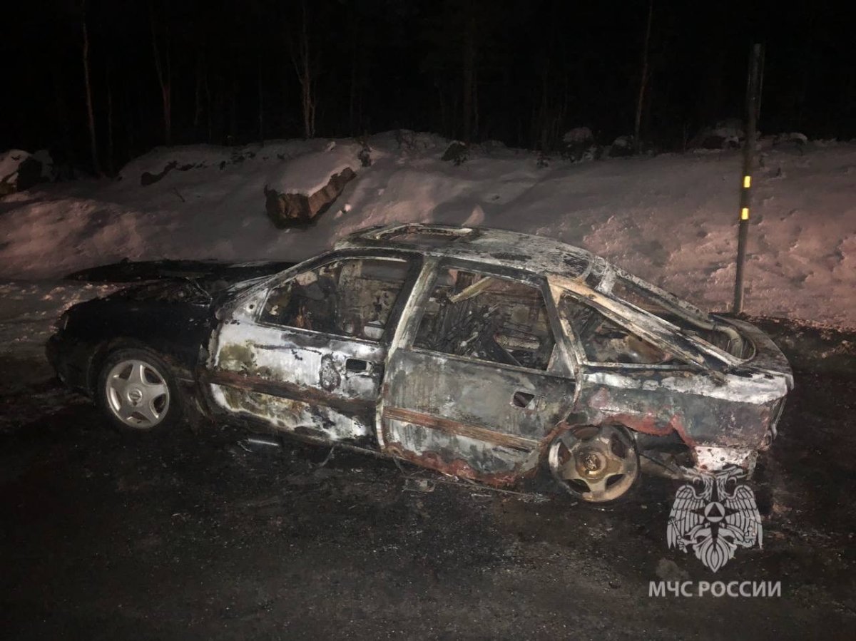Ночью в 00.50 дежурному Управления МЧС России по Мурманской области поступило сообщение о возгорании легкового автомобиля на 1370 км ФАД Р-21 “Кола”.