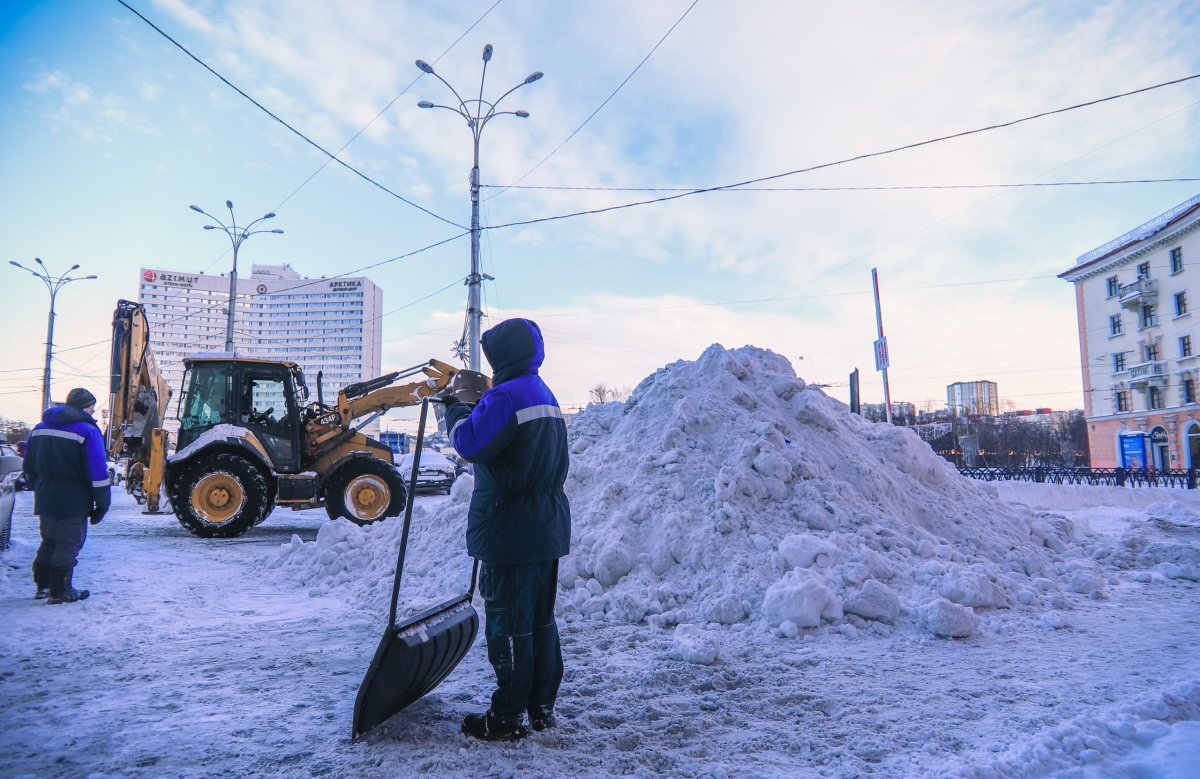"Основные работы по уборке и вывозу снега проводились в ночное время", - сообщили в администрации Мурманска.