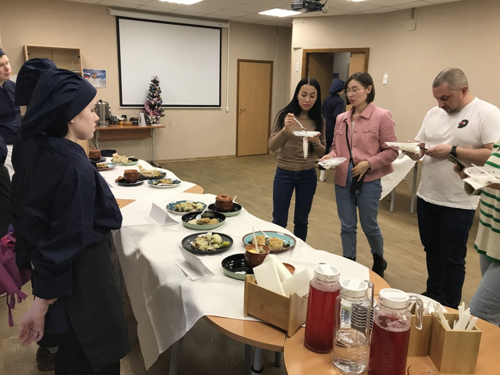 Два дня в Мурманском индустриальном колледже в рамках вариативного курса "Основы Арктической кухни" проходил урок-конкурс профессионального мастерства для студентов группы 304 специальности "Поварское и кондитерское дело".
