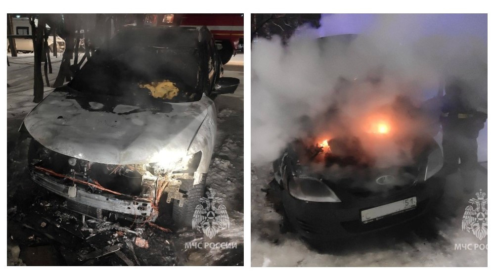 Ночью в Мончегорске сгорели два автомобиля. Пожар произошёл возле дома №27 по проспекту Металлургов.