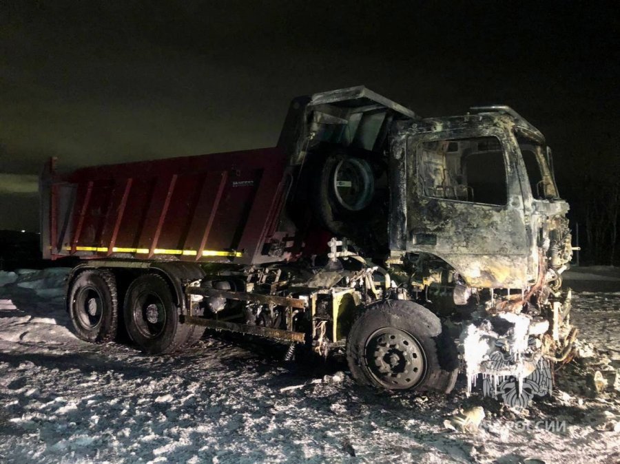 Сегодня ночью в 3.06 на пульт дежурного Главного управления МЧС России по Мурманской области поступило сообщение о возгорании грузового автомобиля в районе 7 километра автодороги к аэропорту Мурманск. Пожар ликвидирован в 3.47.