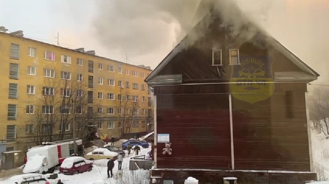 В Мурманске горит жилой деревянный дом №6 на улице Сполохи. На месте происшествия работают пожарно-спасательные подразделения.