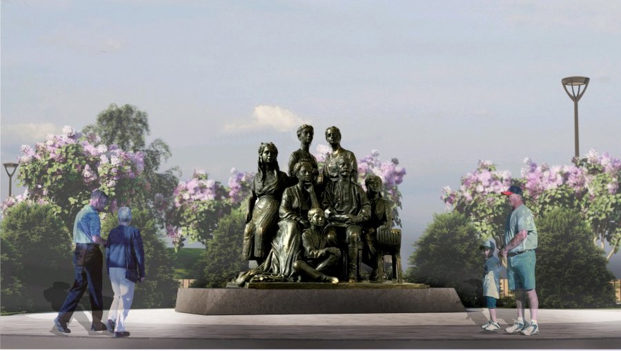 В центре парка – скульптура семьи Романовых. Её внешний вид основан на фотографии 1913 года, на которой изображены Николай Романов и Александра Фёдоровна в окружении детей – Марии, Татьяны, Ольги, Алексея и Анастасии.