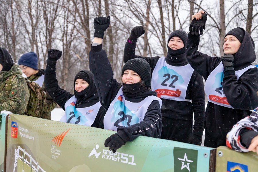 На старт показательной гонки “Герои Севера” вышли 46 участников: профессиональных спортсменов, курсантов Нахимовского военно-морского училища и воспитанников военно-патриотических клубов Мурманской области.