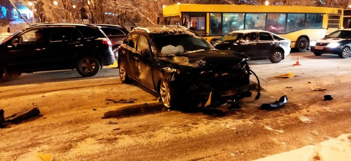 Сегодня около 7:50 утра в Мурманске на перекрестке Кольского проспекта и улицы Шевченко столкнулись два легковых автомобиля Lada Granta и Infiniti FX. По сообщениям очевидцев, на проспекте образовалась пробка: левая полоса в сторону центра занята.
