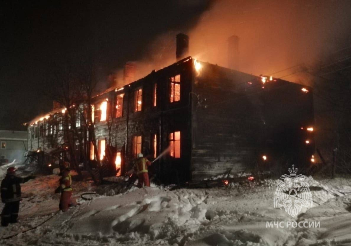 В Умбе с 30 на 31 января сгорел нежилой двухэтажный деревянный дом по адресу Беломорская, 26. Пожар тушили три пожарно-спасательных подразделения в составе 17 спасателей.