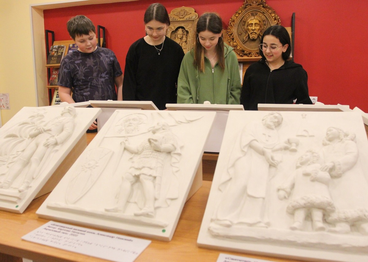 Выставка картин-барельефов "Небесные покровители" для слепых и слабовидящих людей открылась в Межпоселенческой библиотеке Кольского района.
