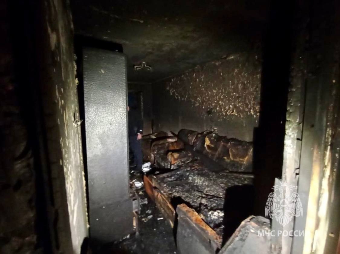 Огонь уничтожил личные вещи и мебель хозяина квартиры. Пожар распространился на две комнаты и балкон общей площадью 25 квадратных метров. Жилье закопчено по всей площади.