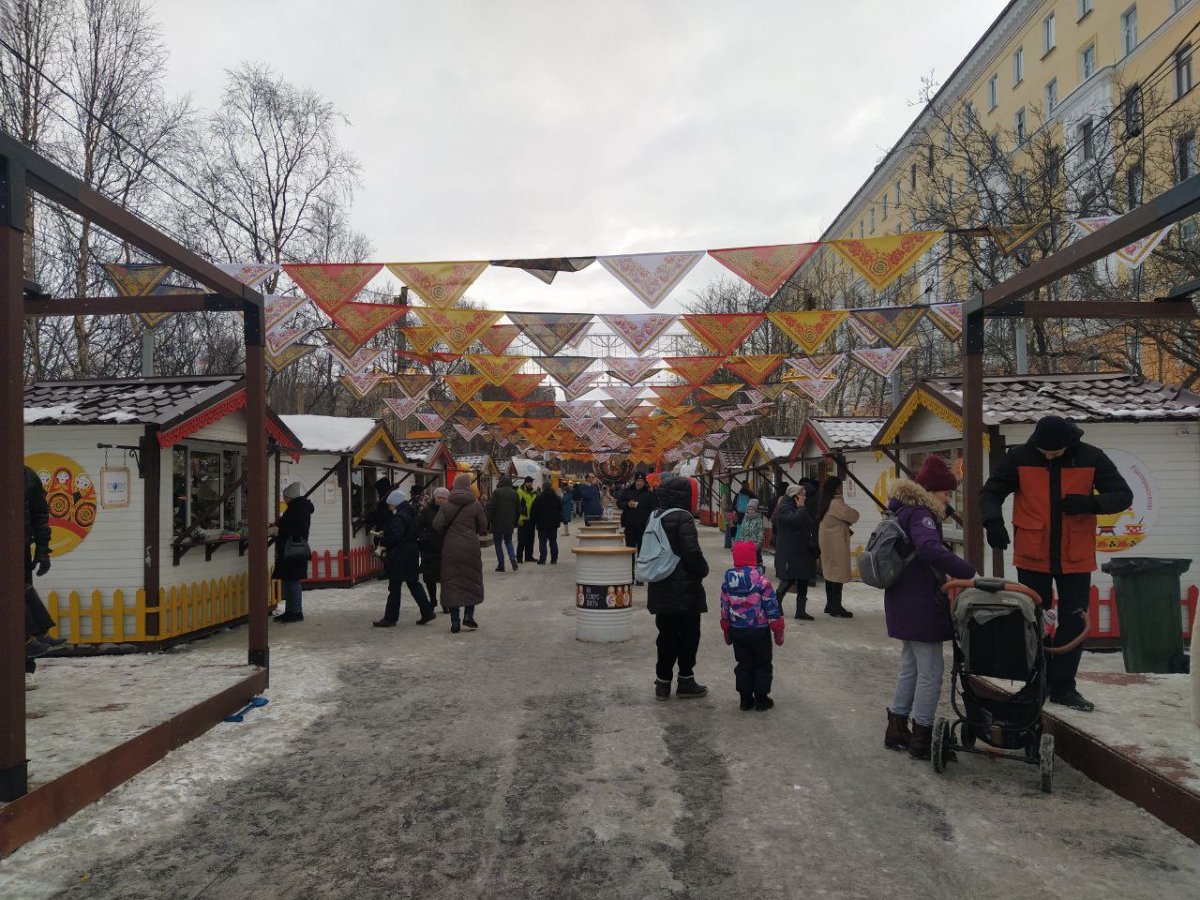 В Мурманске на улице Воровского начала работу ярмарка «На Севере — масленица».