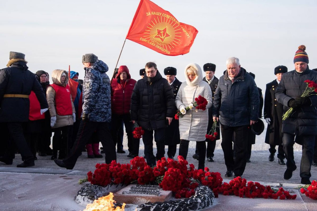 Участники мероприятия возложили к Вечному огню цветы и почтили минутой молчания погибших северян, сражавшихся за мирное небо над головой.
