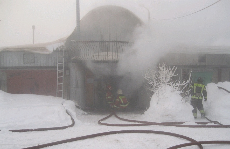 Огонь повредил внутренние деревянные конструкции первого и второго уровней гаража. Перекрытия рухнули. Обгорело также имущество, хранившееся в гараже. Общая площадь гаража, поврежденная огнем, составила 80 квадратных метров.