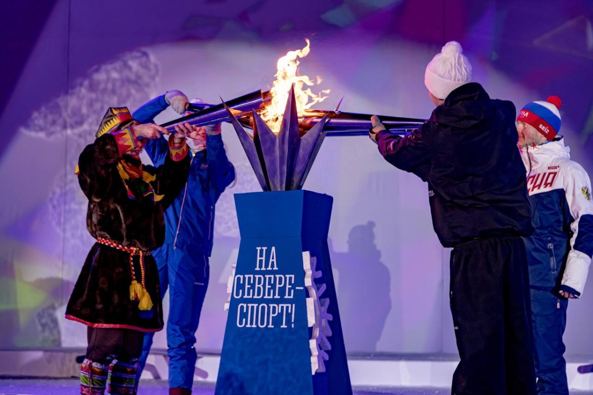 Огонь Полярной Олимпиады зажгли мастер спорта международного класса по спорту слепых и слабовидящих людей Екатерина Мошковская, заслуженный мастер спорта по натурбану Иван Лазарев, призер первенства России 2022 года по сноуборду Артем Карепин и представитель коренного малочисленного народа саами Яков Яковлев. После этого министр спорта РФ Олег Матыцин объявил Праздник Севера официально открытым.