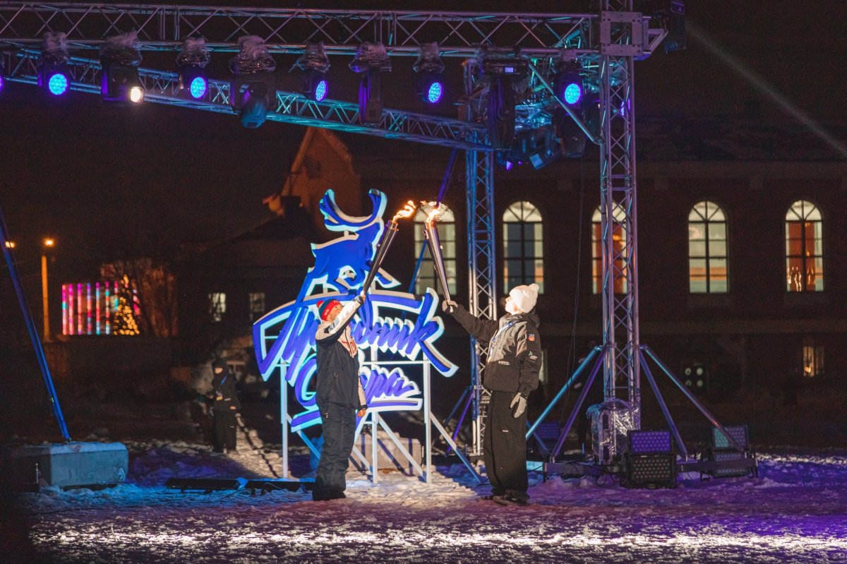 Огонь Полярной Олимпиады зажгли сноубордист Артём Карепин, заслуженный мастер спорта по натурбану Иван Лазарев, мастер спорта международного класса по спорту слепых и слабовидящих людей Екатерина Мошковская и представитель коренного малочисленного народа саами Яков Яковлев.