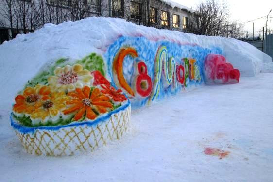 Участники творческого кружка из нескольких отрядов трудились над произведением три дня. Недостатка в строительном материале у них не было благодаря недавним обильным снегопадам.