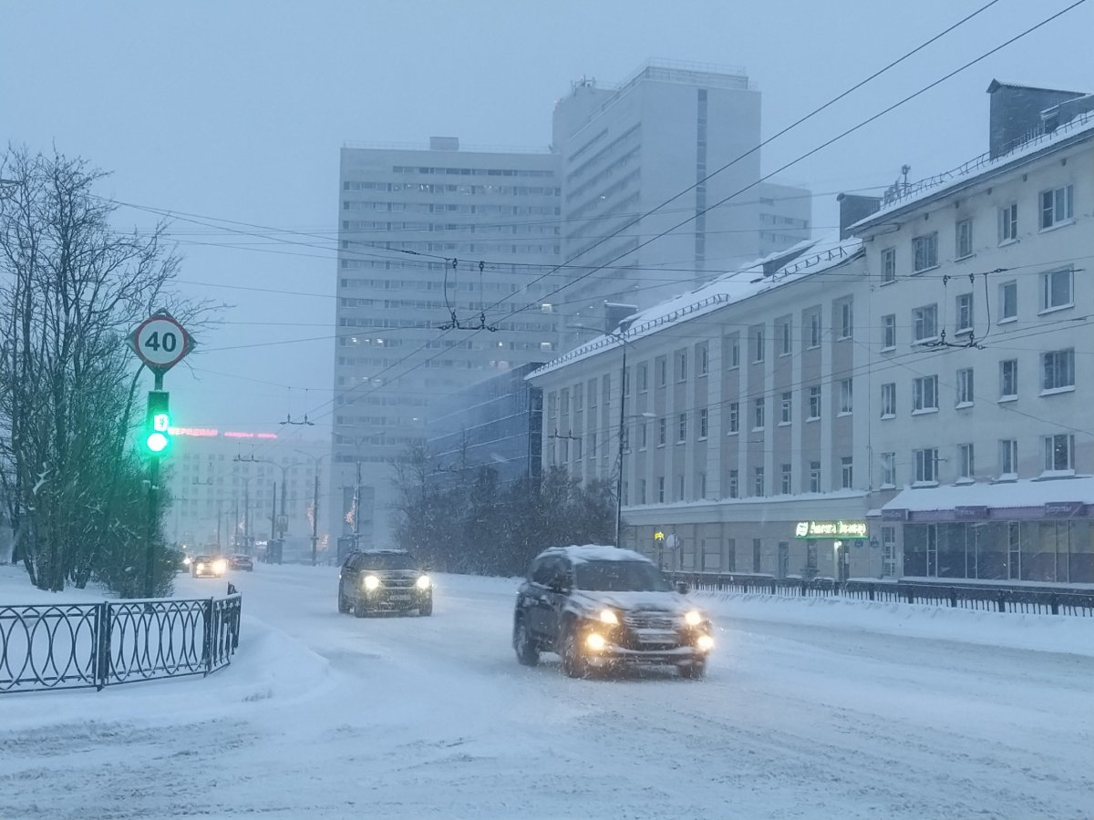 Сегодня утром в Мурманске температура воздуха составляет -5 градусов, ветер северо-западный 8-14 м/с.