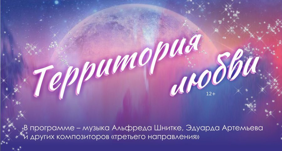Программа "Территория любви" - первая из череды путешествий в удивительный мир музыки композиторов "третьего направления". Она посвящена творчеству Альфреда Шнитке, Эдуарда Артемьева и других музыкантов, чей уникальный почерк, круг образов и язык сложно однозначно отнести к одному из существующих стилей, но сочинения, которых узнаются с первых нот и неизменно трогают душу. Заглянуть в творческую лабораторию авторов, ощутить вкус времени, облачённый в стихотворную форму поэтами - современниками, окунуться в атмосферу проникновенных строк и красивых мелодий вас приглашают: