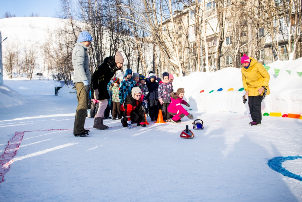 В мурманском детском саду №112 прошли соревнования по кёрлингу. Воспитанники получили массу положительных эмоций от игры на свежем воздухе.