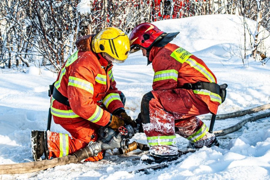 Рядом с железнодорожной станцией Лопарская заполярные спасатели провели учения. По легенде, рядом произошло природное возгорание, огонь мог распространиться на населенный пункт.