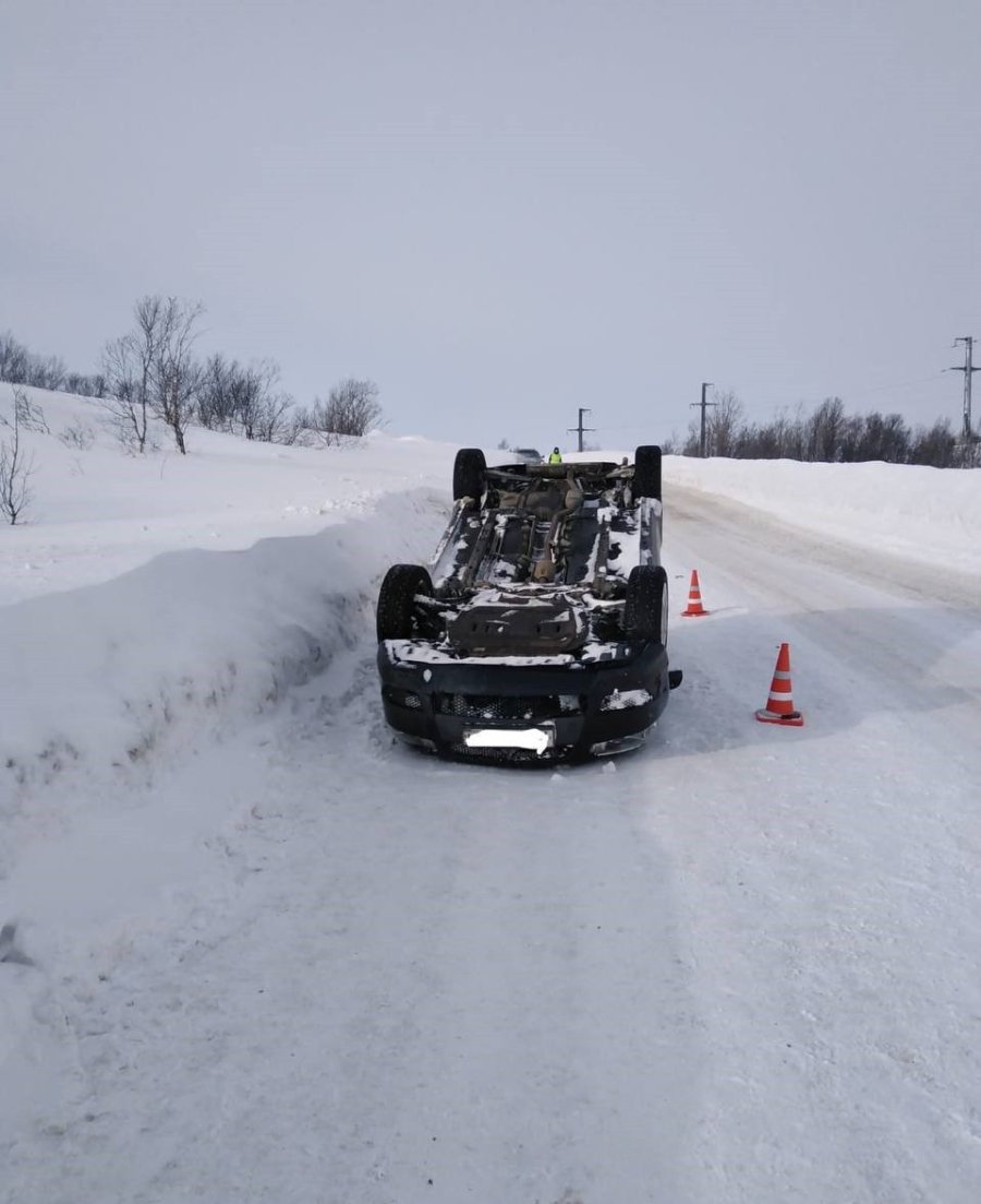 В Мурманской области на 1 км автодороги Снежногорск – Гадживо произошло ДТП. Водитель Mitsubishi, двигаясь со стороны Гаджиево, не справился с управлением и допустил опрокидывание автомобиля на крышу.