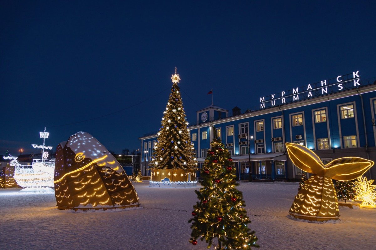 На фото: Так украсили морской вокзал Мурманска в преддверии Нового 2023 года