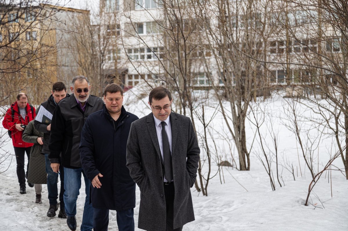 Сегодня руководители Мурманска осмотрели двор за бывшим “Электроном” на проспекте Ленина, где в этом году планируется благоустройство. Игорь Морарь и Юрий Сердечкин оценили грядущий фронт работ, которые предстоит выполнить подрядчику.