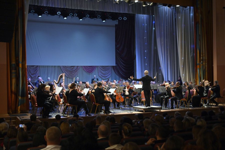 Творческим подарком Североморску стал праздничный концерт. На сцене ДК выступил Национальный филармонический оркестр России под управлением Владимира Спивакова.