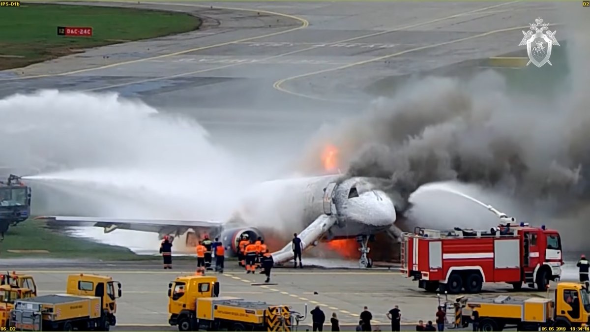 При посадке SSJ 100 ударился колёсами о взлётную полосу. Конструкции деформировались, керосин выплеснулся и загорелся.
