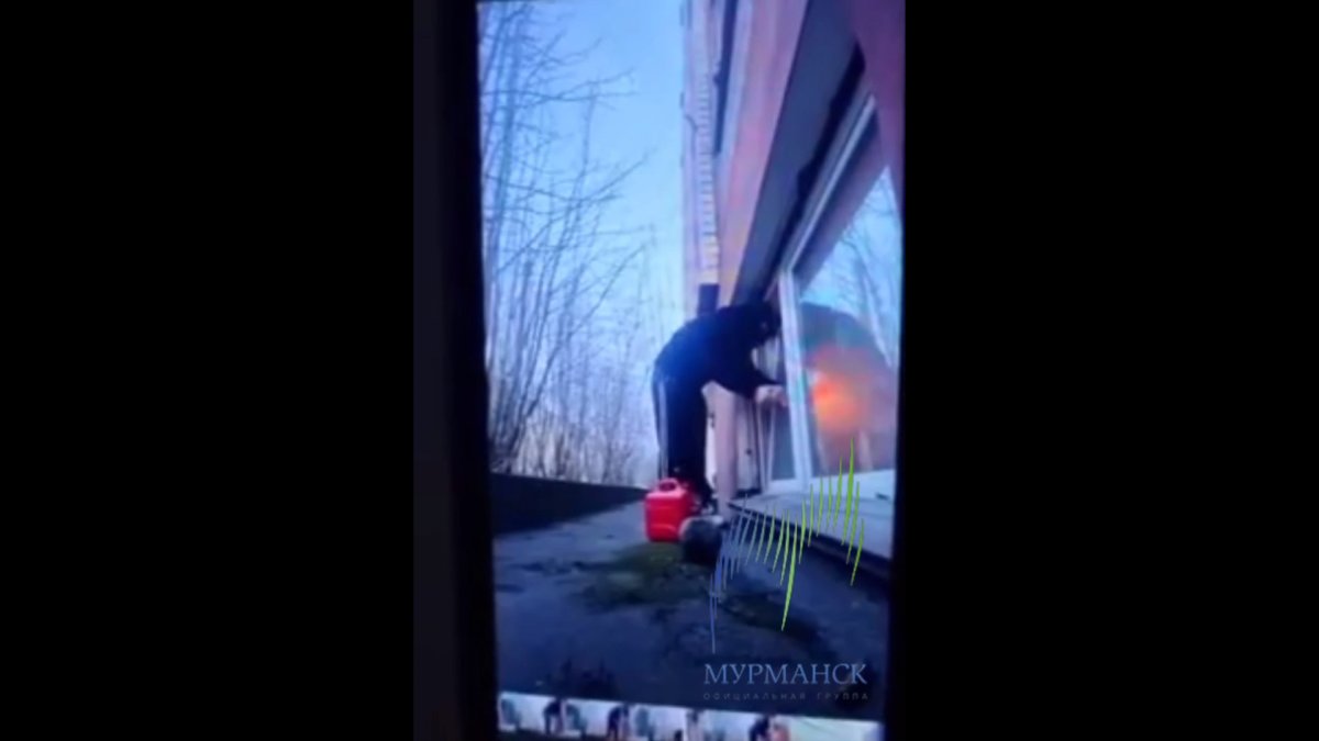 В интернете распространяется видео поджога военкомата в Мурманске. Запись делал сам поджигатель.