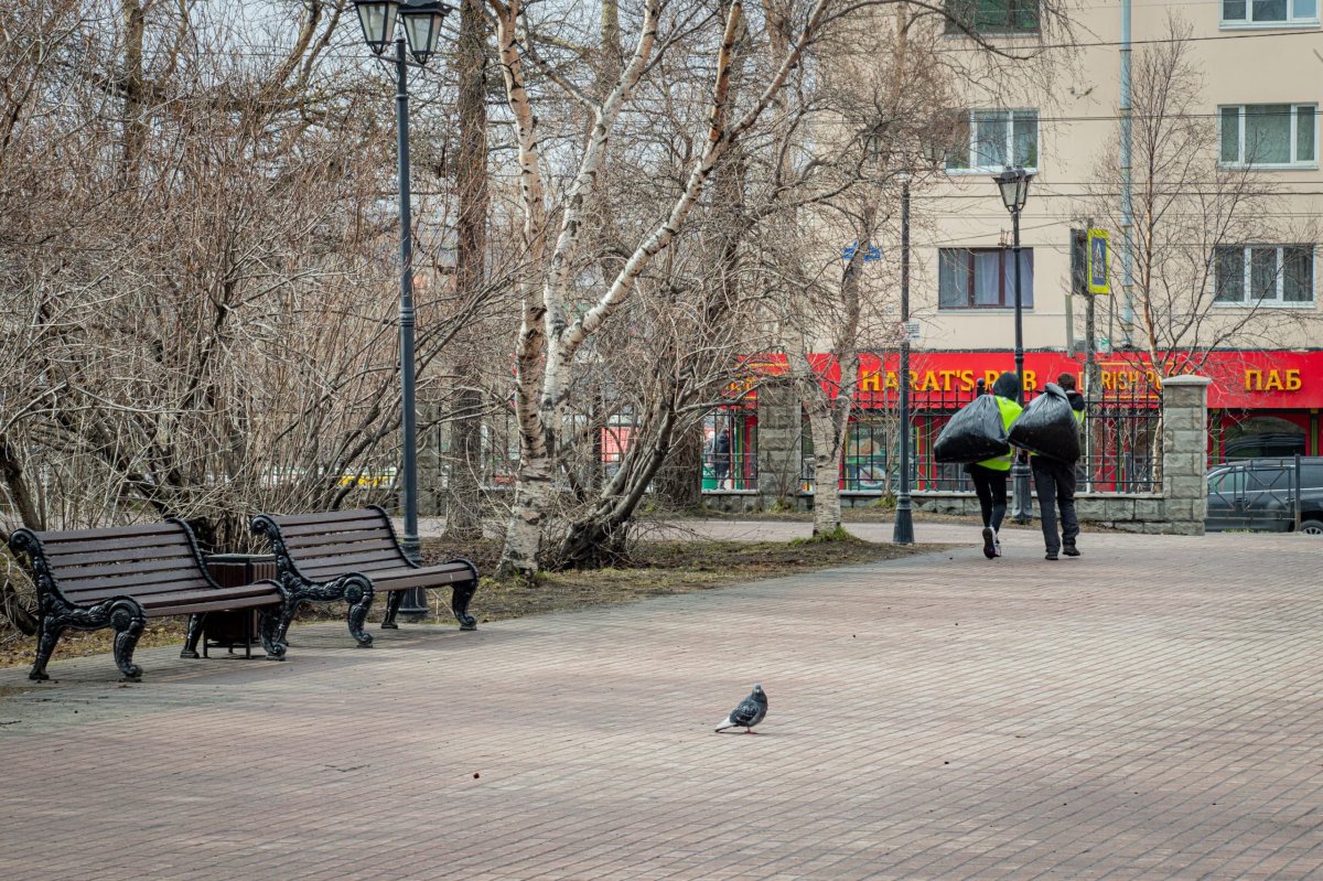 На фото: уборка сквера на улице Ленинградской
