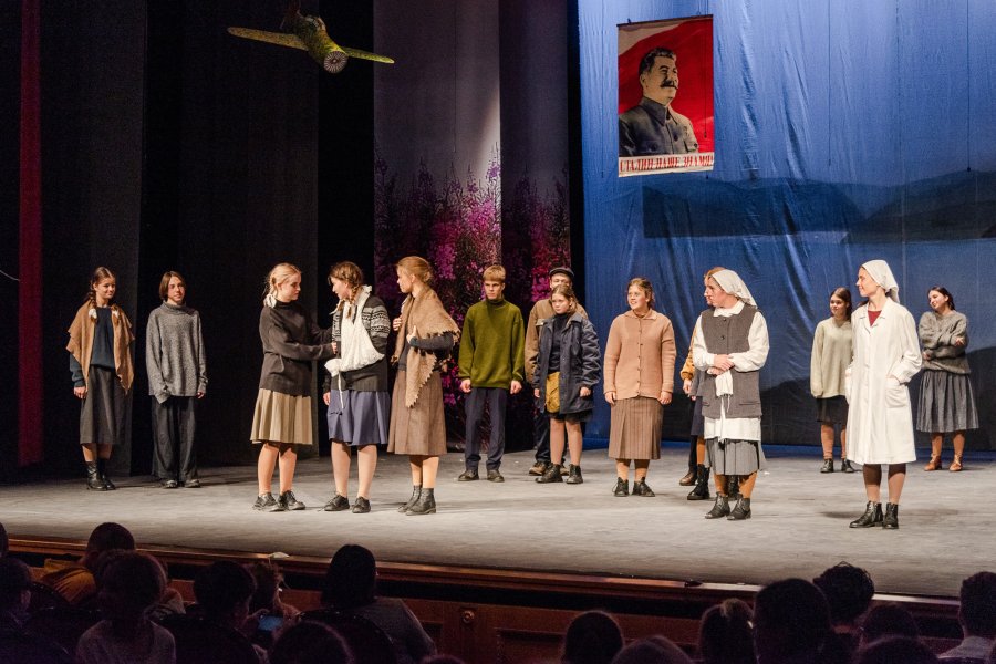 Визит мурманской делегации кинематографистов проходил вместе с гастролями Детской театральной школы Мурманска в Минске. На сцене государственного академического театра юного зрителя мурманчане показали легендарный спектакль-памятник "Дети военного Мурмана" по пьесе заслуженного работника культуры РФ Елены Крынжиной.