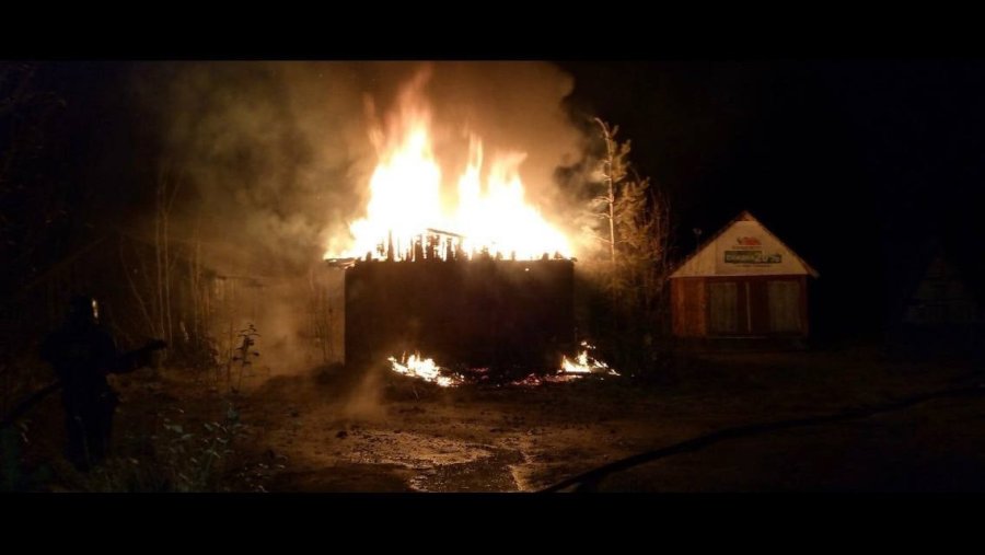 Вечером 27 мая в Кандалакшском районе загорелась баня. Сообщение о пожаре в СНТ "Голубые озёра" поступило в 21::55.