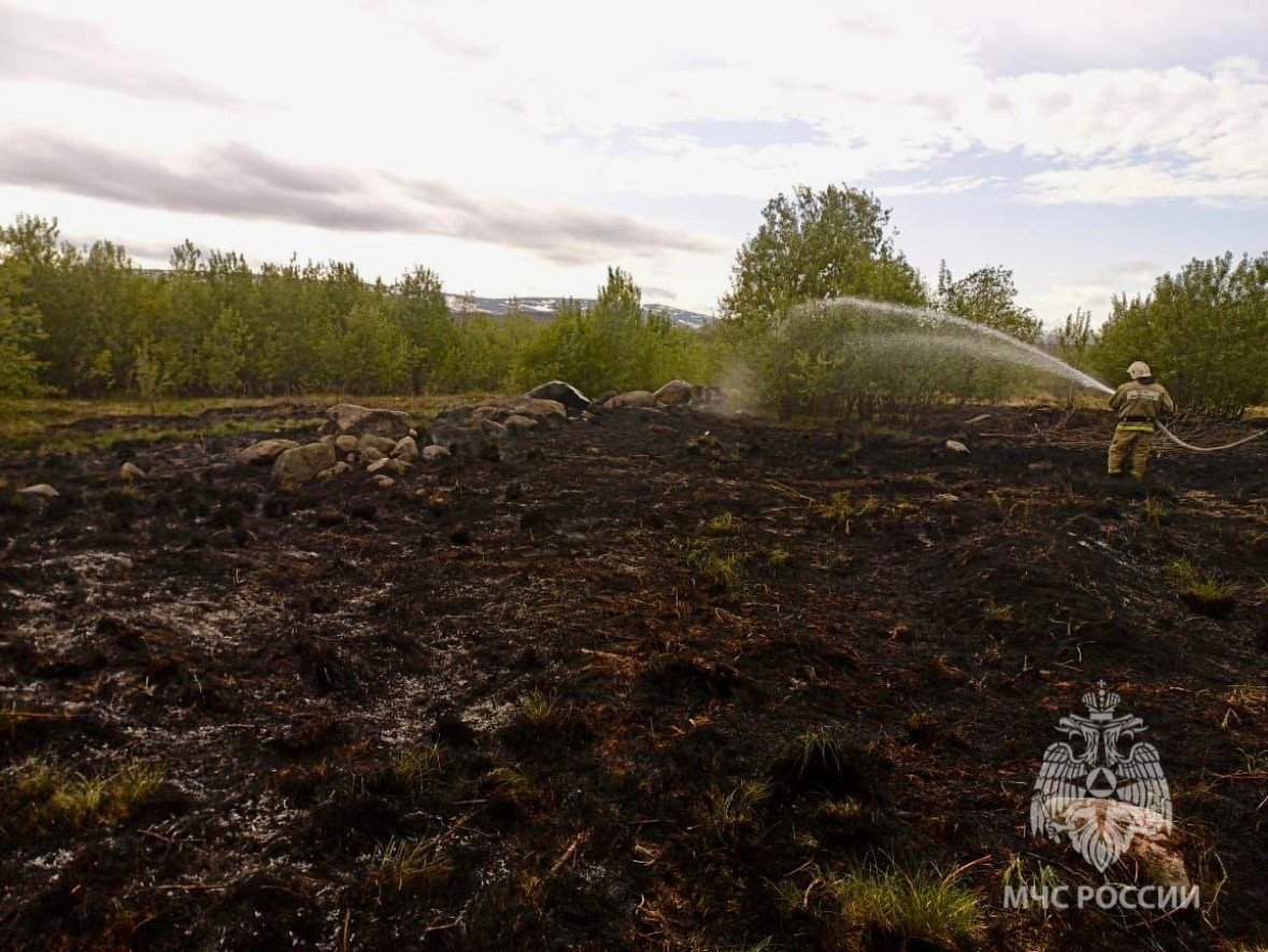В результате огонь уничтожил траву на общей площади 50 квадратных метров. Причина пожара устанавливается, сообщили в ГУ МЧС по Мурманской области.