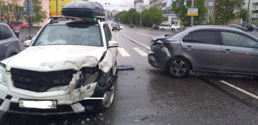 “Водитель автомобиля Mitsubishi (двигался по левой полосе в сторону улицы Молодежная) при перестроении не убедился в безопасности своего маневра и допустил столкновение с автомобилем Skoda, двигавшимся в попутном направлении. После столкновения указанных ТС, автомобиль Mitsubishi откинуло на встречную полосу, где он совершил столкновение с автомобилем Mercedes, который поворачивал направо (с улицы Полярные Зори в сторону Пять углов)”, - сообщили в пресс-службе ОГИБДД по Мурманской области.